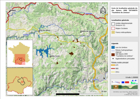 La Zone Spéciale de Conservation FR7300870 « Tourbières du Lévézou » couvre près de 488 hectares. Le site comporte 18 entités distinctes réparties sur les communes de Canet-de-Salars, Castelnau-Pegayrols, Curan, Saint-Beauzély, Saint-Laurent-de-Lévézou, Saint-Léons, Salles-Curan, Ségur et Vezins-de-Lévézou.+ date du classement